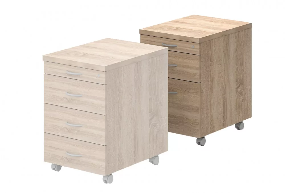 Kivitel szerint készülhetnek fém fiókkal vagy fafiókkal, golyós teleszkópos vasalattal és teljes kihúzású sínekkel. A stabil görgőknek köszönhetően könnyen mozgathatók és átrendezhetők az irodán belül.